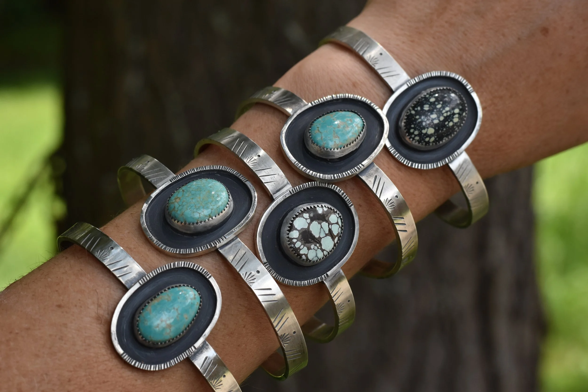 I am a mother to two, a perinatal therapist, and a metalsmith/ quilter. I started making jewlery in 2018 about a year after having my first child. Motherhood woke me up in a way I could have never anticipated and for which I have so much gratitude. After going from tough job to tough job in my early days as a clinical social worker/therapist and then straight into motherhood, I realized I needed and wanted to make space in my life for the creative parts of me that had been craving a chance to thrive but which I had never really intentionally honored. So, I took an intro to metalsmithing class for fun and was instantly hooked. I also returned to sewing around the same time, which I had been doing on and off since childhood, and tried my hands at making my first quilt. I was equally hooked! The practice of these two mediums has helped me feel a great sense of “coming home” to myself by honoring the many different parts inside of me. In turn, my creative practice has deepened my clinical work with clients and mothers as I embody the importance and necessity of finding and carving out time for joy.